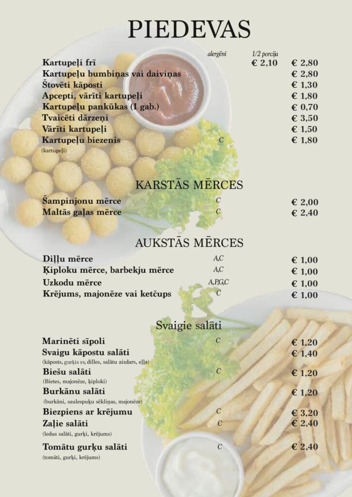 Piedāvājumā esošo piedevu klāsts
